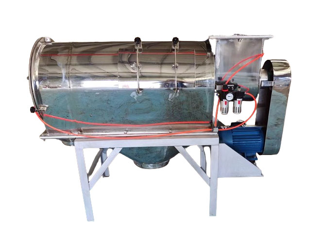 转子的两端均安装在球形轴承座内,球形轴承可以自由灵活动作。净化压缩空气是用于复杂轴承端的密封及辅助物料(粉、粒)的悬浮。筛选的物料如糖、脱脂奶粉、PVC粉、环氧树脂粉、金属磁粉等,必须使用复杂的密封结构。所有机型的转子(流化条)、螺旋给料器、筛网管框架均采用不锈钢(304)材料制作,其它部选可以选择不锈钢(304)材料或普通碳钢材料制作。电机是通过V型皮带带动转子(流化条)旋转。