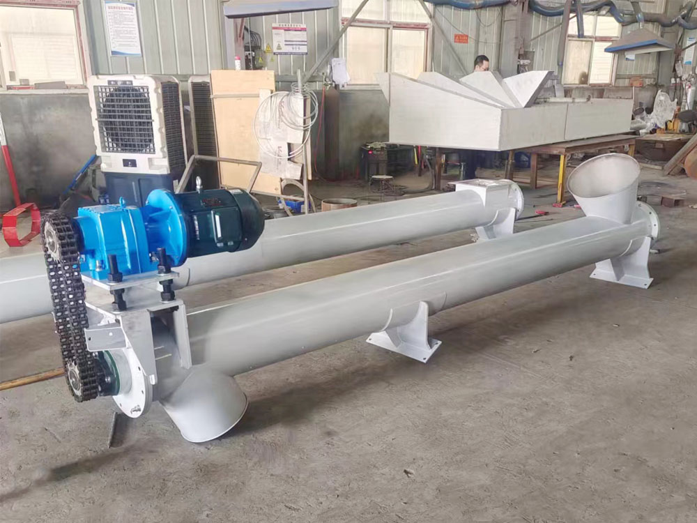 本机结构简单,横截面尺寸小,密封好,操作方便,维修容易。根据用户要求,电机可安装于底部,也可安装于上部,可倾斜输送,也可水平输送。