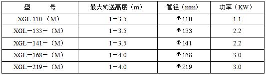 XGL型螺旋输送机技术参数