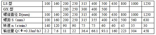 LS型螺旋输送机主要技术参数