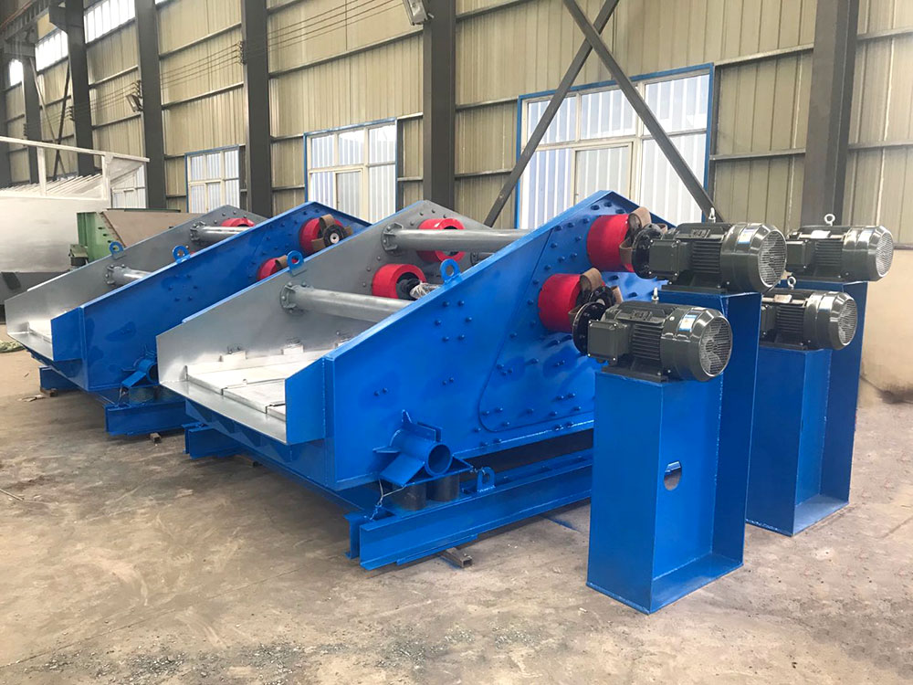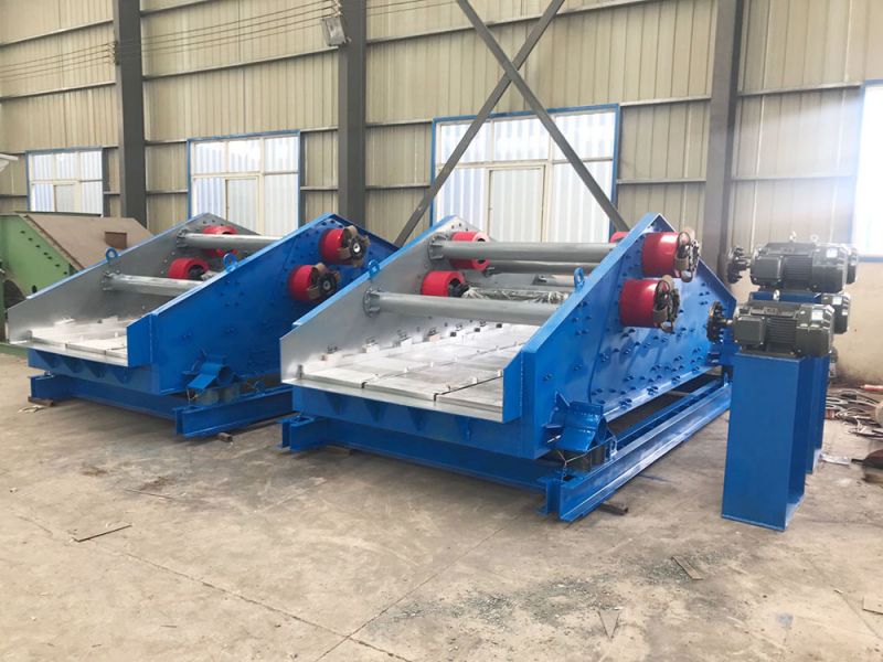 脱水筛采用了双电极自同步技术,通用型偏心块、可调振幅振动器。主要由筛箱、激振器、支承系统及电机组成。通过胶带联轴分别驱动两个互不联系的振动器作同步反向运转,两组偏心质量产生的离心力沿振动方向的分力叠加,反向离心抵消,从而形成单一的沿振动方向的激振动,使筛箱做作往复直线运动。